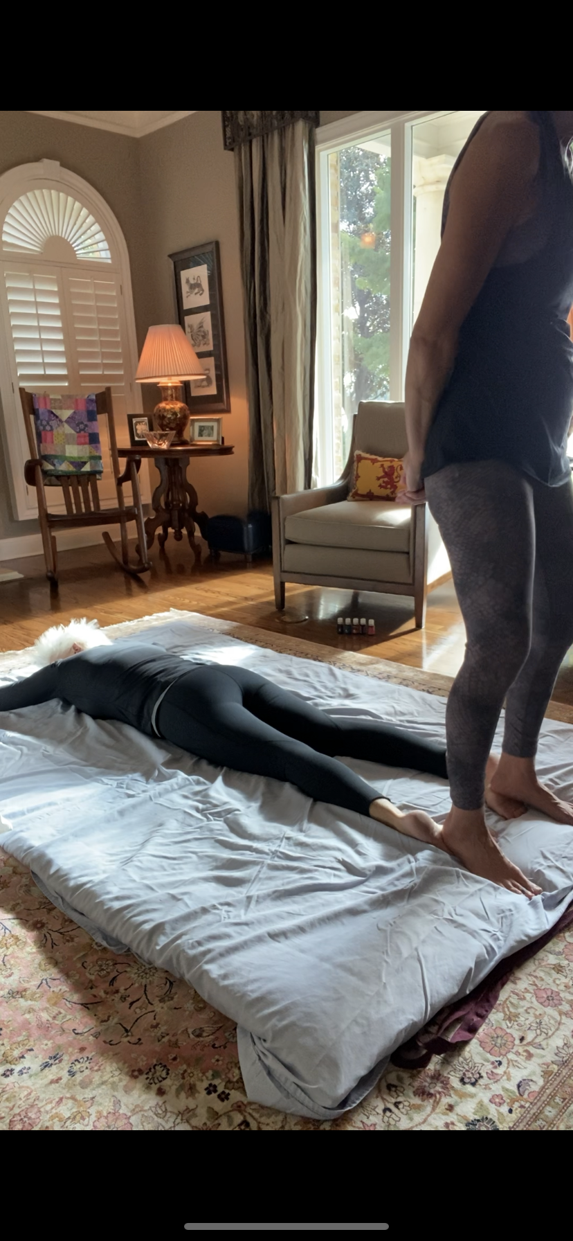 Thai Yoga Bodywork is traditionally performed on a large comfortable cotton futon floor mat which gives the receiver both comfort and full-body support. Working on the floor also allows the therapist to move freely around and above the client, making for effective use of gravity and the therapist’s bodyweight with the consistent changing body positioning. The therapist can also work with the receiver in a variety of positions, including prone, supine, side-lying, and seated.